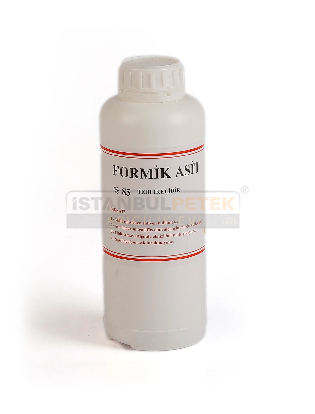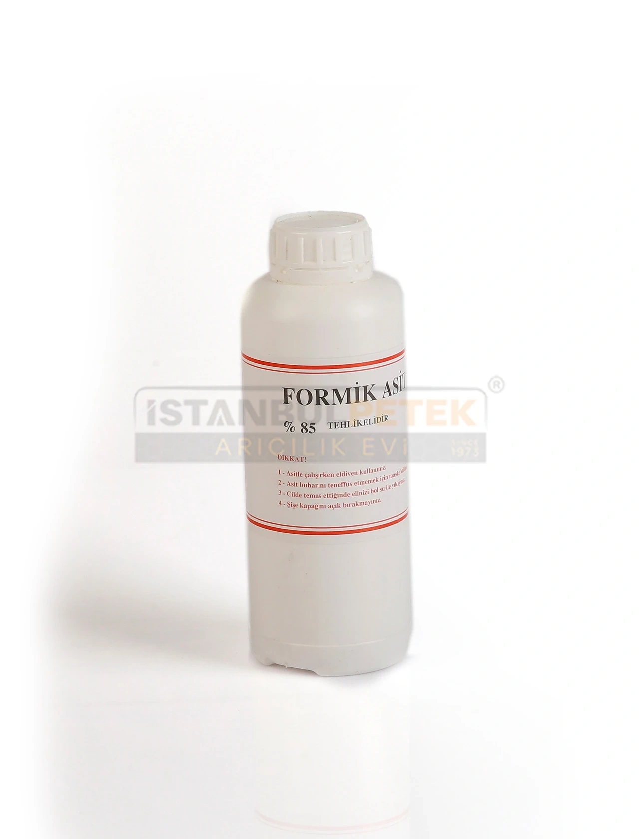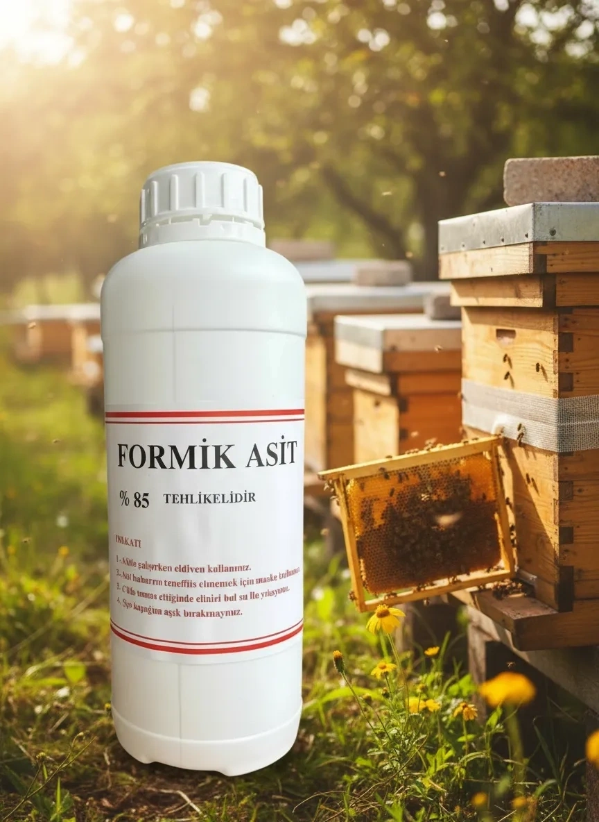 % 85'lik Formik Asit 1 litrelik Ambalaj Halinde = 1300 gr Ürün piyasada satıldığı gibi 1000 gr olarak değil Net = 1 litre (1300 gr) olarak gönderilir. Organik asit olduğundan, bal ve balmumunda kalıntı bırakmaz. Koloni başına 5 veya 8 ml kullanılabilir. Kapalı yavru gözlerinede de etki eder. Organik asitlere karşı varroanın direnç gösteremediği gözlemlenmiştir. Asidin yavaş buharlaşmasını sağlamak için 30 derece sıcaklığın altında kullanılması tavsiye edilir. Bunun dışında her arıcının yaptığı uygulamalar sonrasında kendine özel bir kullanım ölçüsü geliştirebilir.