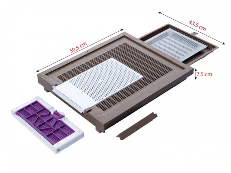 Izgarali yapi ve alt tepsi ile etkili ve pratik varroa mücadelesi yapilir.